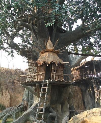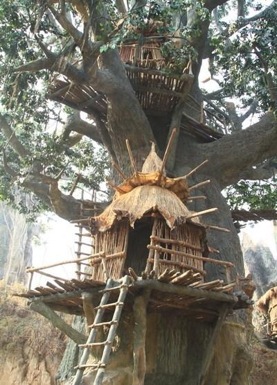 树屋要根据树木的生长形态来建造。其优点在于可以拒止野兽袭击,还可以让人生活在远离潮湿地面的高处: