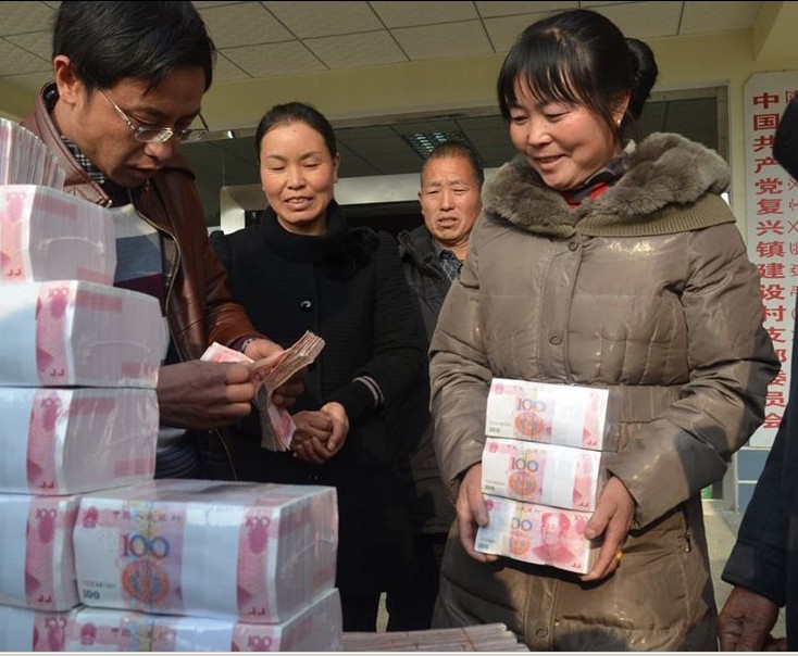 凉山州冕宁县复兴镇建设村村民,就盼来了他们的“年终奖”——村里种养殖合作社的分红,总金额1311.5万元。14日上午,凉山州冕宁县复兴镇建设村召开2013年分红大会,分红金额达1311.5万元。现场,重达312斤的人民币现金一捆捆整齐地放在台上,340余户入股村民排队领钱,最多的一户领到了30万元,最少的也有近万元。有村民说,数钱数到手都软了。