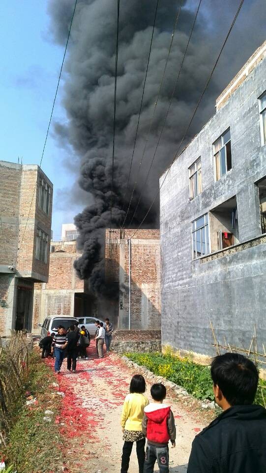 初二新圩火灾现场目击图片:救火车来咧