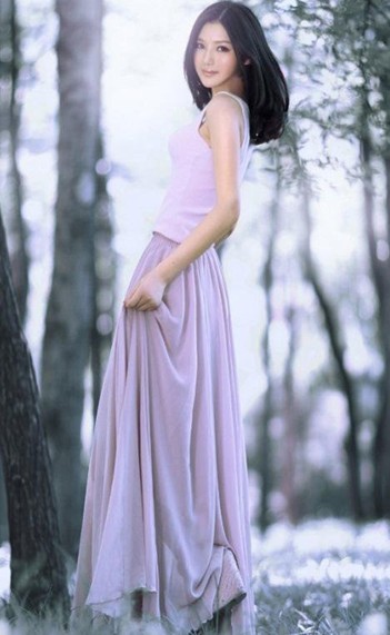 苍霞兼兼,白雾沾沾,有美飘裙,在林一端