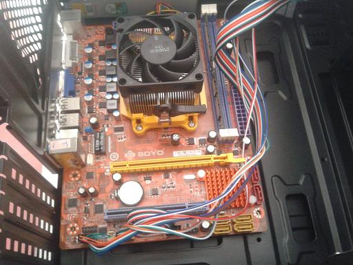 第十三步:把主板放进机箱里去,检查一下主板六个螺丝孔所对应的机箱位置有木有上好螺丝座。佳通电信工作人员一直以来工作都是细致负责的,不会象其他店铺一样,六个螺丝孔只上三个甚至两个螺丝。