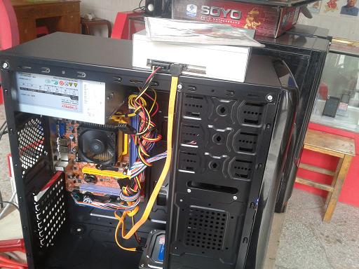 第二十四步:做完上述二十三步,一个主机基本上就组装好了。以下的步骤是安装系统了。因为该任性的客户不要光驱,为了继续安装操作系统,只好临时接上一个光驱。当然,也可以用U盘啦什么的装系统,但没有用光驱安装这么快的。