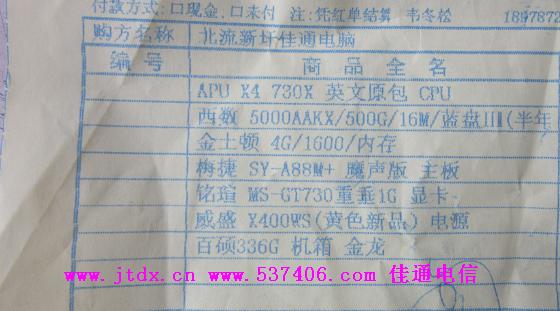 今天中午接到客户要求,要装一台四核主机。 马上按客户的要求,通知经销商发货下来: