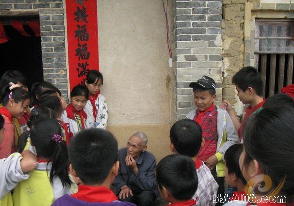 新圩镇下坡村的小学生,在看望孤寡老人,奉献爱心。看清楚了没有,哪家的孩子?