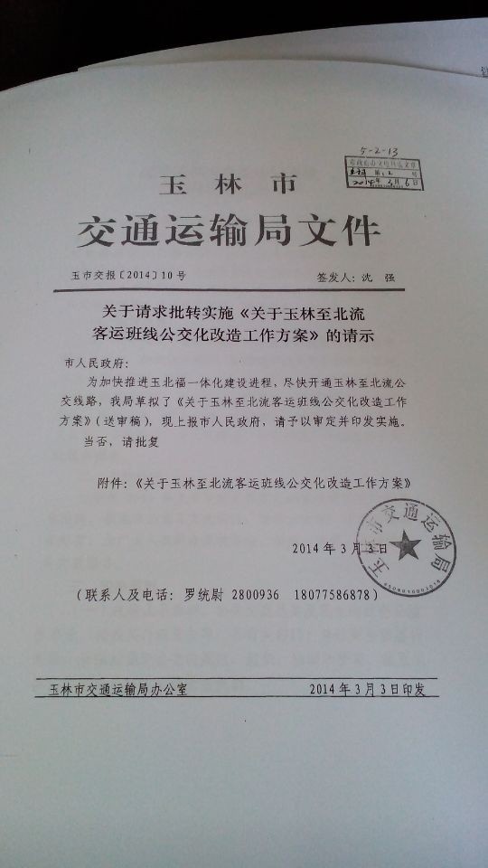 玉林至北流公交车提上议事日程。 普通公交4文,空调5文,起点玉林火车站,终点北流南站。 运美快班将成历史。 但不知,新圩到玉林的公交几时开始? 道路扩建什么时候能好呢,要不要两年? 2014年,是北流到新圩的旧路扩建的工程年,听说。