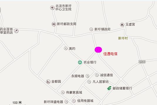 以下是北流市新圩镇最新街道地图,红方区域就是新圩佳通电信营业点。